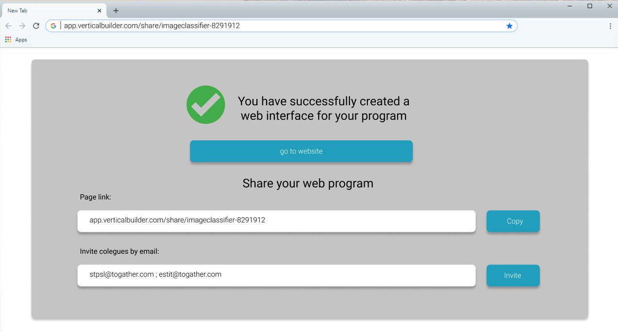 Share your generated website via a link or invite your colleagues, customers, or friends by email.